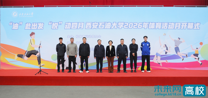 宣誓完毕,出席开幕式的各位嘉宾、学生代表共同上台,为本次体育活动月揭幕。随后,种宇宏宣布:“‘油’此出发,“悦”动四月,西安石油大学2026年体育活动月正式开幕!”